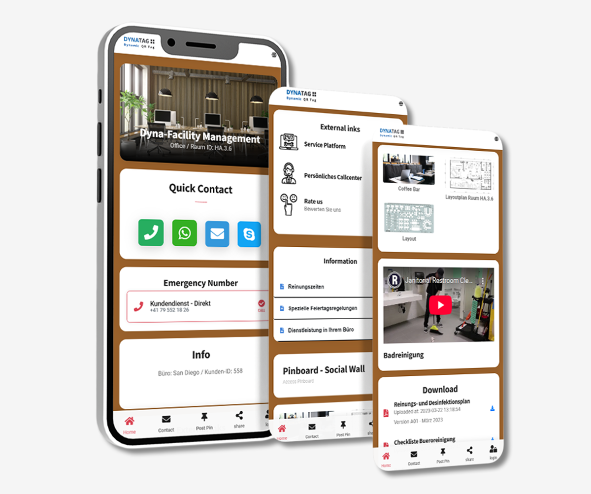 De DynaTag webapp brengt relevante informatie, contactmogelijkheden en content samen op één overzichtelijk scherm. Alles is vooraf centraal in te richten en direct beschikbaar via de browser, zonder app installatie of technische drempels voor de gebruiker.